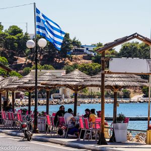 Blefoutis is set in a deep bay, and the beach is narrow and filled with Greek families. The beach is backed by several bars and taverna’s.