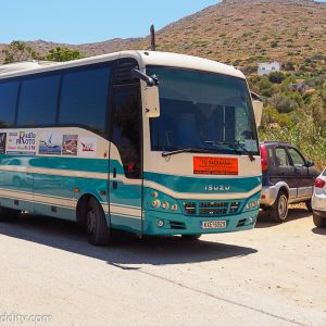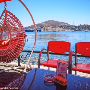 As I walk back along the harbour I see a bus timetable outside the Murano café. The lady from the café explains the timetable to me and there is a bus to Alinda in 45 minutes. I have plenty of time to stop for a cold drink whilst I wait and the ladies tells me that there is more of a breeze blowing along the harbour’s edge This is probably the hottest day of the trip so far. The sea is like glass and the humidity is draining.