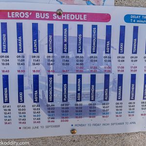 Eventually the bus arrives and I ask the friendly driver if I could stay on the bus all the way to Blefoutis in the North of the island and then go back to Alinda. He’s happy to oblige. So with two tickets costing 4.5€ I start my little island tour on the famous Leros bus with its “tweedlytweedly” little horn. (You have to hear it to understand the sounds I’m trying to write!)