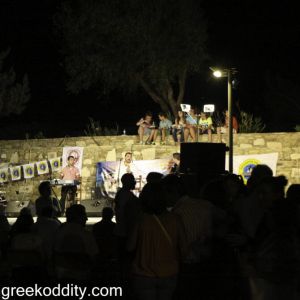 The show is now in full swing and gregarious Greeks are dancing and singing along with the musicians on the stage. A man fills a endless plastic cups with water and hands them out amongst the crowd. Above the small stage, children sit with their legs dangling over the church wall to get a birdseye view of the entertainment.