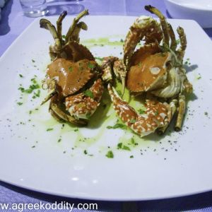 We chose really well. This restaurant more than exceeded our expectations. The waitress Maria introduces herself to us and asks us where we are from. She tells us that she has been to Cairo and liked it very much – we both agreed that we didn’t really like Alexandria. Peter was keen to have sea food and chose crab. I didn’t have much of an appetite and chose meatballs – I think I know who’s looked most impressive! This was all washed down by a glass of cold, crisp dry white wine. I think I had a second glass whilst Peter concentrated on extracting the crab meat out of the shell!
