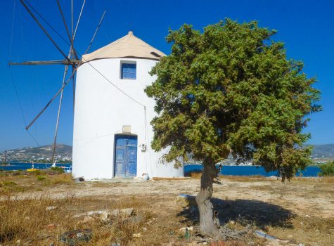 By late afternoon, around 5 pm, we made our way back towards the port, passing the old windmill and the blue-domed church that anchors the harbour. Very recognisable landmarks of the island.