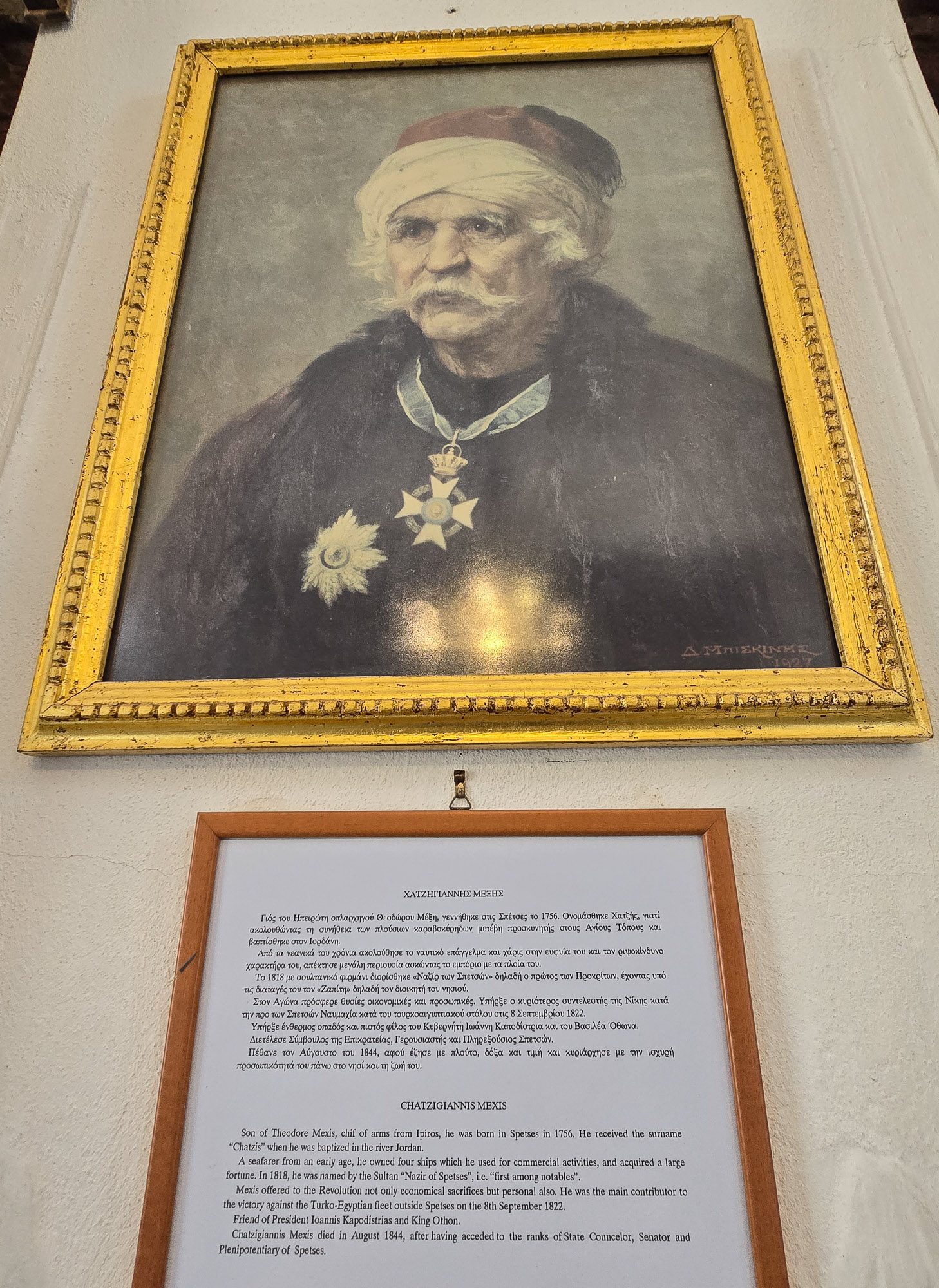 Inside, I was left to wander through the rooms at my own pace. There was an icon room filled with religious hagiography which included post-Byzantine icons from old churches on the island. Some of the icons had been brought back from countries like Russia by ship owners. A room dedicated to the revolutionary period houses a gallery of Spetsiot naval battle fighters – familiar faces of the heroes gallery running through the town. Weapons of the period were also on show.