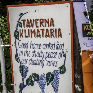 Before we reach Villa Harmonia we see a sign for a restaurant called Klimataria. We take a left turn off the main street to look at it (location is almost everything!) and decide that this is where we will eat tonight.
