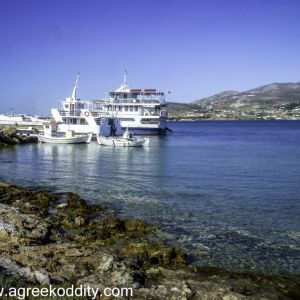 This morning we have decided to take a trip to the Caves of Antiparos. I visited the caves on my first trip nearly 20 years ago but I didn’t make it on my second visit. We are told that we can either take the local bus which leaves at 11.30am or we can take the tourist bus that leaves at 11.00am. The tickets are 1.60 euros each way on the tourist bus so we decided to take this. We have a bit of time before the bus leaves so we walk to the top of the main street until we reach the bakery. There is a lovely selection of artisan shops here. I’ve had this overwhelming craving for some Galaktobouriko so we order one of these with a spinach and feta pie – what a great breakfast!