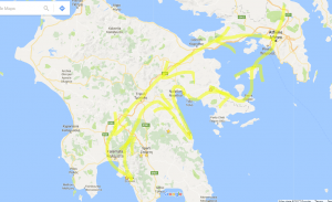 The online community was fantastic and after many interesting suggestions and much deliberation, I decided that the Peloponnese would be the focus of the trip and we would be spending Easter in Tyros. I always feel much more comfortable doing a circular route so that towards the end of the trip you are heading towards your departure airport with less chance of getting stranded! The planned trip looks like this.