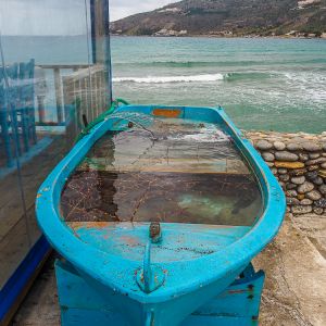 We gather up the energy to continue walking to the next village of Neo Itilo where there is a small beach. Just as we do the sky becomes overcast and the temperature drops.