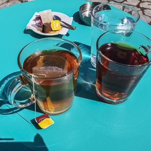 Once back at the hotel we decide to walk down to the neighbouring villages of Limeni and Itilo. Eleni tells us that we can walk there as it is all nearly downhill but best to get a taxi on the way back as the hill is steep. Eleni directs us to walk to the main road and just follow it all the way down. However, we stop off at one of the cafe’s for a cup of tea first. We’re pretty sure that we can get on the main road by going through the village and following a path down to the main road. We ask at the café if this is possible – apart from looking surprised that we were going to walk there they tell us yes there is a path.