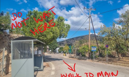 Now onto my dilemma. Today is Friday and I’d decided that I would go and stay in Pyrgi for 3 days. I’d found a lovely place with availability and had booked it. I had completely failed to notice at the time, that the long distance (Green bus line) doesn’t run at the weekend. Not to worry – there are taxi’s a plenty here and they all seem to have fixed prices. I’ll order one in the morning.