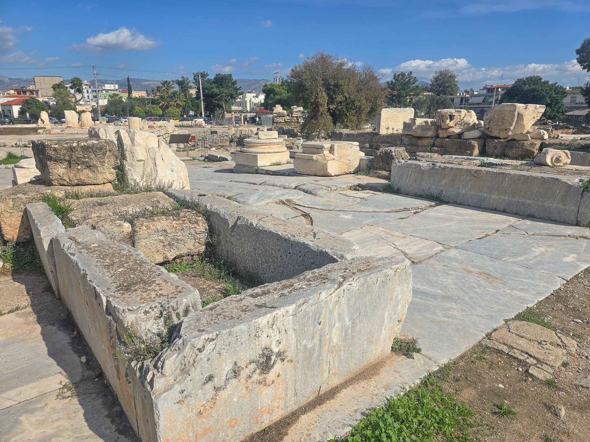 The procession crossed the river over a substantial bridge. Interestingly, sections of the Sacred Way have been uncovered near modern metro stations, showing layers of use built up over centuries. Worn surfaces, repaired tracks, the marks of wagon wheels still visible. - Through fields and sanctuaries