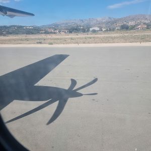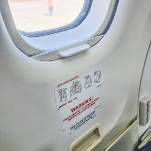 I have seat 1a on the little prop plane. I do my duty and make sure that both of my bags are in the overhead locker. The flight attendant asks me if I am English and then goes on to tell me that if anything should happen during the flight it is my responsibility to open the emergency exit next to me. She tells me to read the instructions on the door. Gosh I didn’t know that having a front seat came with such responsibility!
