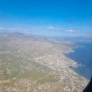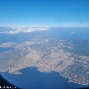 After Evia, there is nothing – just sea. I know Andros and Tinos are down there somewhere but maybe to the right of the plane. The pilot tells us that soon we will see an island out of the left window and that is Psara. Shortly after that we are over Chios and begin our descent. Chios also looks incredibly verdant and a thriving agricultural industry is apparent.