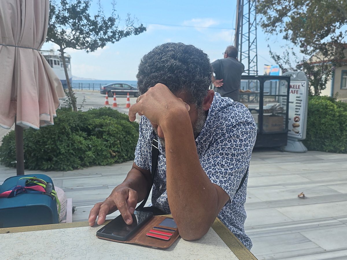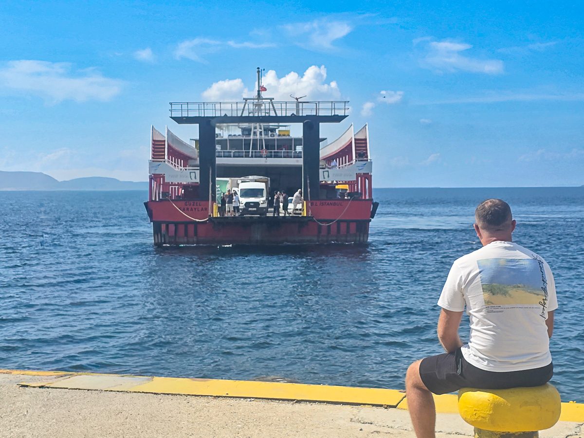 A man selling simet from a mobile stand at the front of the cafe asked us (in Turkish) what we were waiting for. We got the gist. He thought we were going to miss the boat, which was getting ready to loosen the ropes from the quayside. We told him ‘Tekirdag’, to which he just shook his head. He spoke to the lady running the cafe, seemingly to check if she knew about a boat to Tekirdag. She also looked unsure. She took out her phone and spoke to someone. By the time she’d finished the call, a couple of other locals had arrived and joined the conversation. One of them, a young woman walking her dog, spoke English, so this certainly helped us all understand the conversation.
