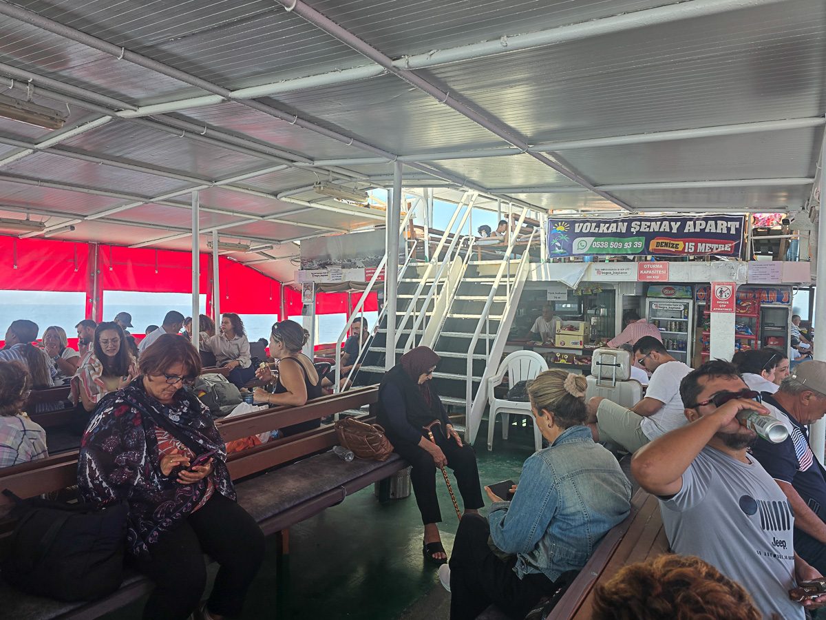 After thanking them for their help, we boarded and settled up on the deck for the ride. The Omer Kaptain 3 had definitely seen better days. The seating was mainly wooden benches, which for some had doubled up as a bed, along with a mish-mash of furniture that looked as though it had been sourced from a flea market. I love these characterful ships though. There was a small canteen selling glasses of tea and snacks, enough to keep Peter happily supplied for the journey.