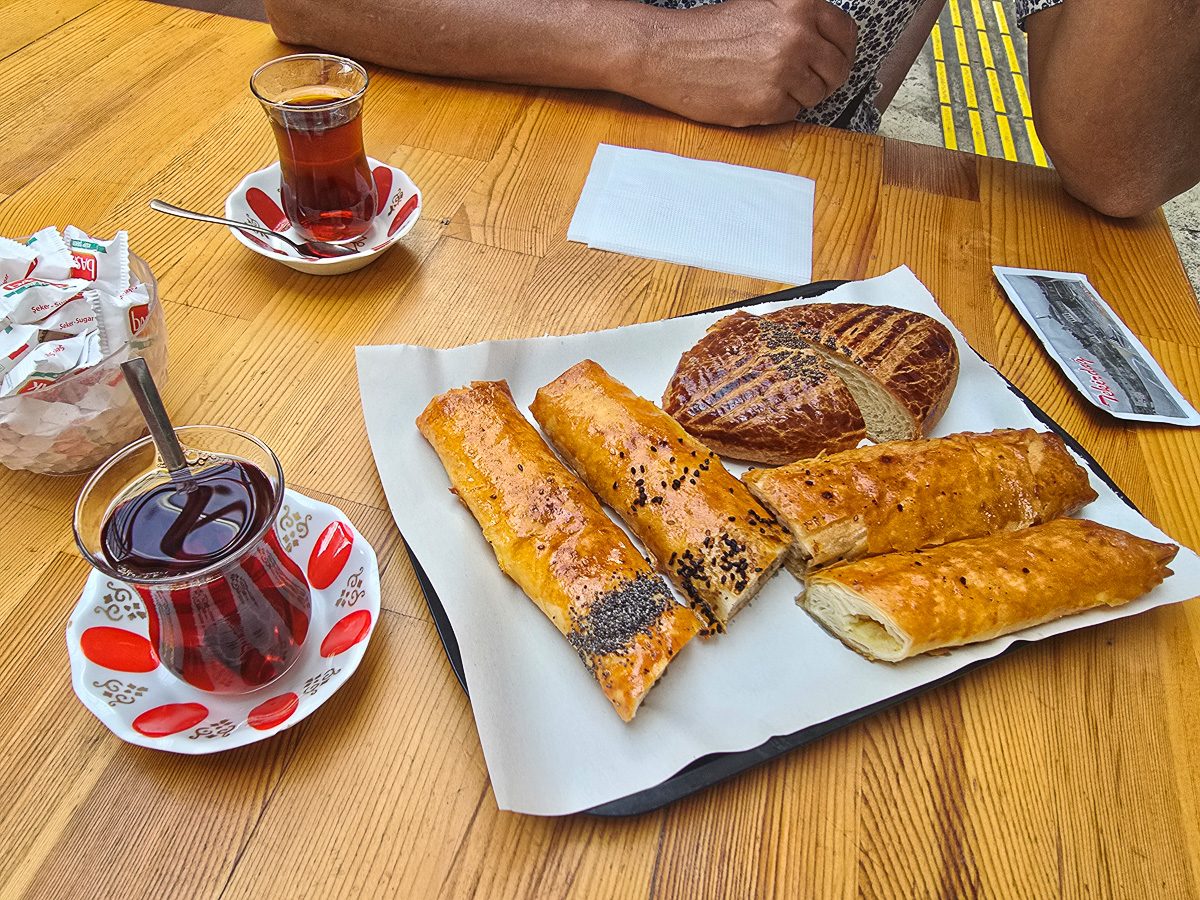 As usual, the bus station was nowhere near the port, so we picked up a taxi across the road to take us there. We were dropped off at a large modern bus station, where we purchased our tickets to Canakkale. We had a fair bit of time to wait for the bus, so we settled down at a table in a cafe and tucked into some snacks.