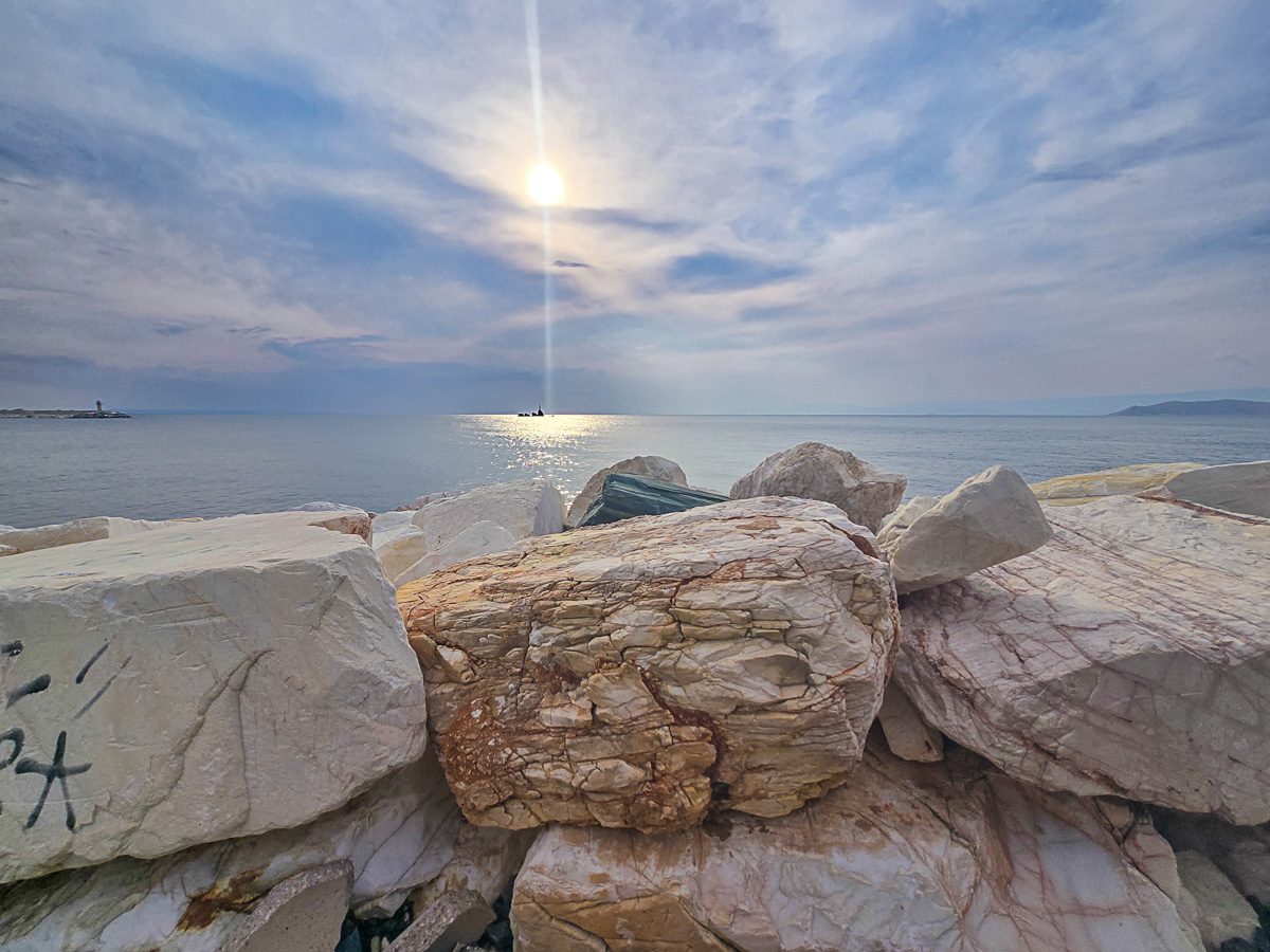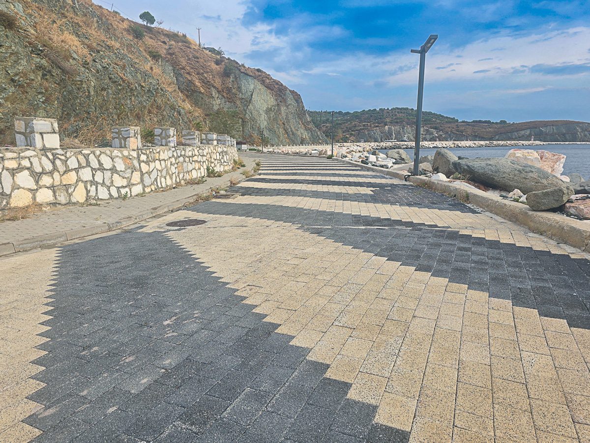 After stopping for a little borek and a glass of tea in a cafe on the promenade we started heading east. The promenade seemed to stretch for kilometres and such was the abundance of marble that was quarried on the island, huge slabs of it were used as a breakwater. At the end of the promenade was a small marina with a variety of fishing vessels from small caiques to big industrial boats.