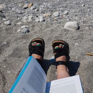 I read a little (Freedom Seeker by Beth Kempton), dip my toes in the freezing water and just sit and feel the sun on my skin and the smell the orange blossom on the trees.