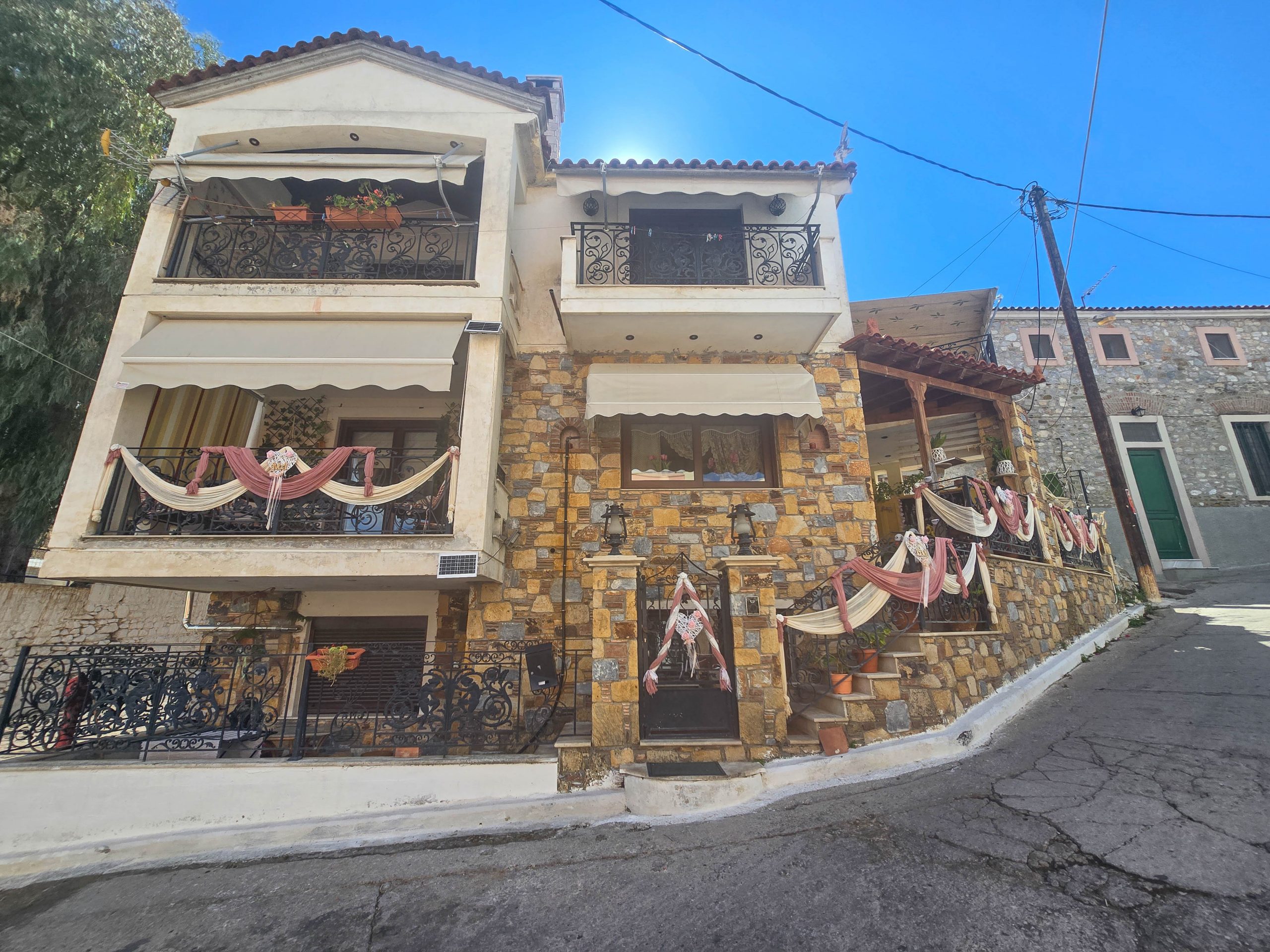 I was dropped at an unassuming street corner. A path lined with olive groves on either side climbed steadily until it reached the entrance to the village. What I found was a place of steep streets and shaded alleyways, tumbledown stone cottages, and a church with an impressive bell tower. Nearby stood the Tsoukaladellis Tower, an 18th-century stone house that belonged to the local Tsoukaladellis family and once formed the centre of their agricultural estate. Built at a time when rural homes needed to be defensible as well as practical, its thick stone walls, narrow openings and height give it an almost fortress-like presence. Closed now and quietly weathering, it still feels firmly rooted in the village.