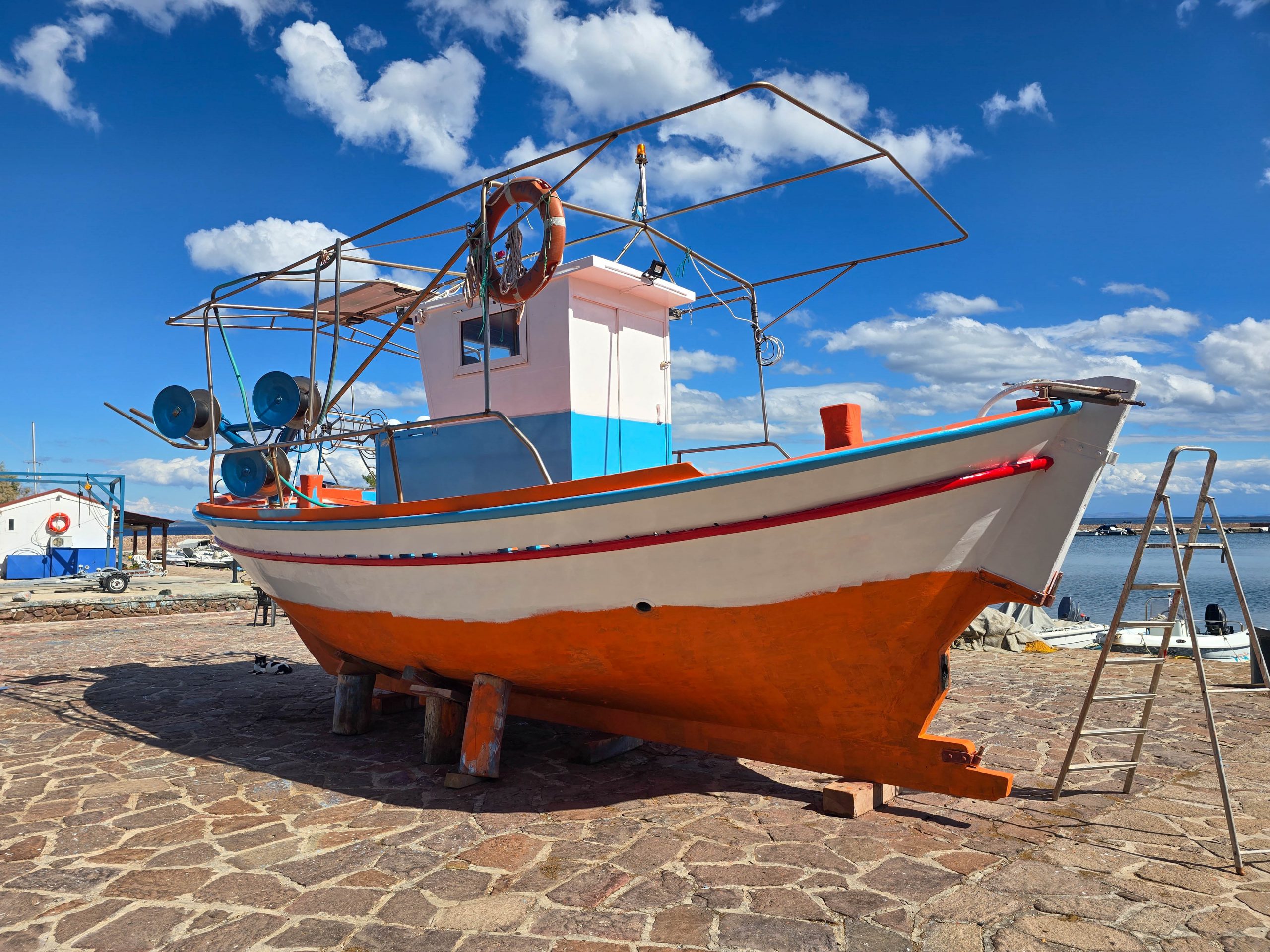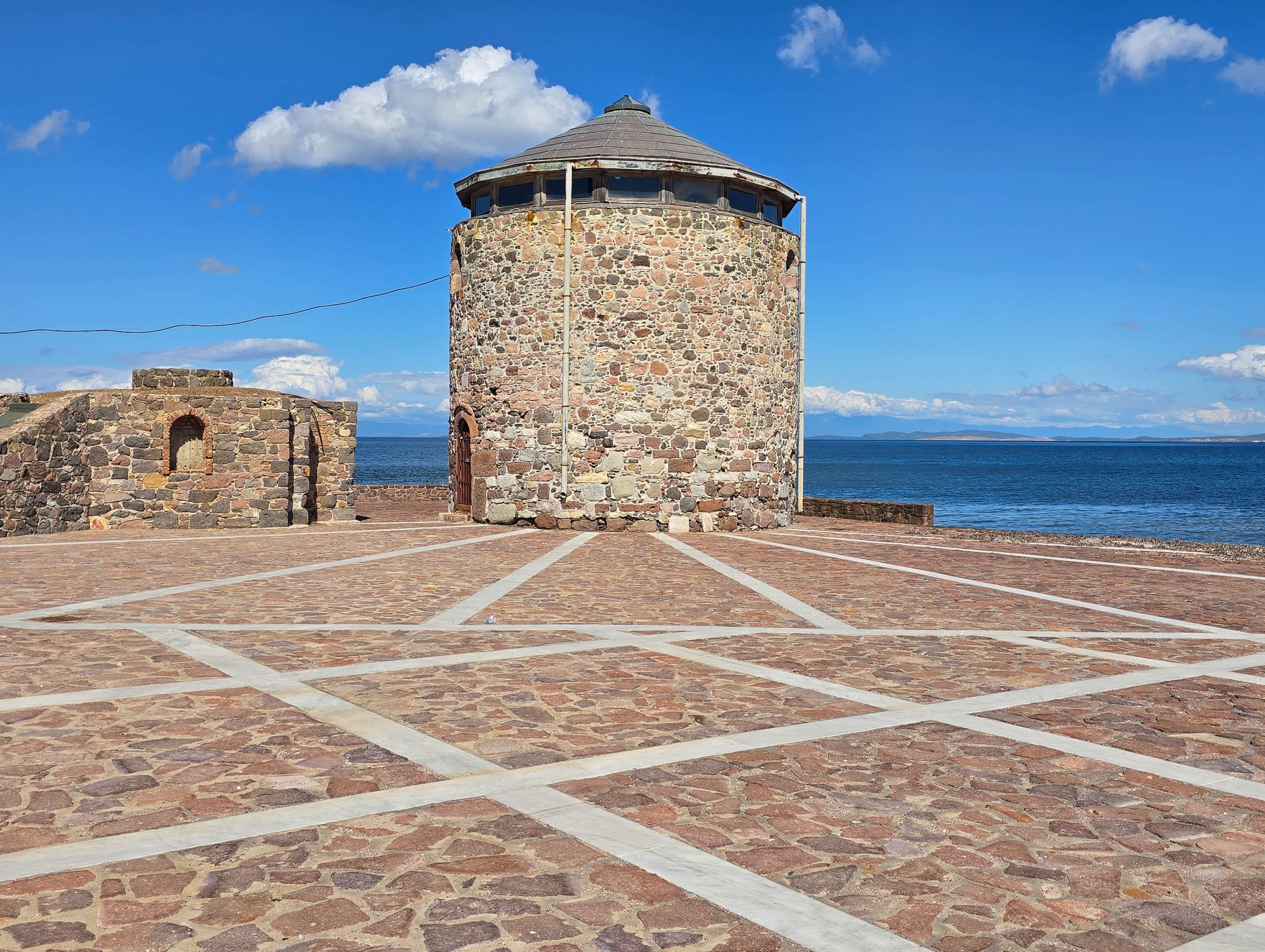 Down at the harbour, a small square opens out beside a stone windmill. Fishing boats bobbed gently, framed by a cluster of cafés and tavernas. Just as I was getting caught up in the mooching, I spotted the bus back to Mytilene pulling in. Unsure how long it would be before the next one, I ran for it, the driver waiting patiently as I crossed the road.